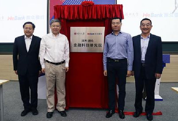 深圳大学校长李清泉、副校长徐晨、微众银行董事长顾敏、行长李南青等出席并为金融科技研究院揭牌。