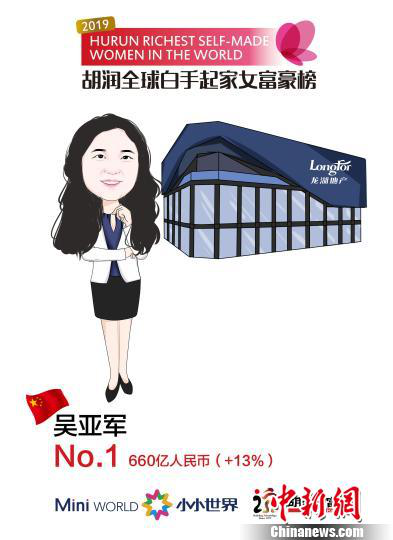 榜单显示,龙湖集团董事长吴亚军成为全球白手起家女首富,财富比去年上涨13%,为660亿元人民币。ABC供应公司创始人戴安·亨德里克斯和香港富华国际集团董事长陈丽华以505亿元人民币的财富并列第二。