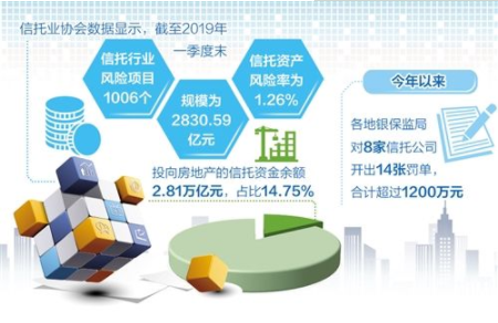 信托业协会数据显示,截至2019年一季度末,信托行业风险项目1006个,规模为2830.59亿元,信托资产风险率为1.26%,较2018年四季度末上升0.28个百分点。