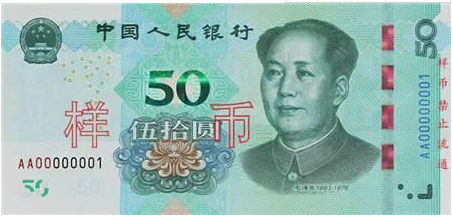 新版50元、20元、10元纸币中部面额数字调整为光彩光变面额数字,且调整了中部装饰团花的样式,左侧增加了装饰纹样,同时还调整了左侧横号码的样式、左侧胶印对印图案的样式,取消了左下角光变油墨面额数字和右侧凹印手感线,右侧增加动感光变镂空开窗安全线和竖号码,同时调整了右侧毛泽东头像的样式和右上角面额数字的样式。此外,20元纸币和10元纸币还取消全息磁性开窗安全线。