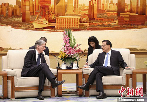 中新社北京5月15日电 (记者 余湛奕)中国国务院总理李克强15日下午在北京人民大会堂会见来华出席“一带一路”国际合作高峰论坛的英国首相特使、财政大臣哈蒙德。