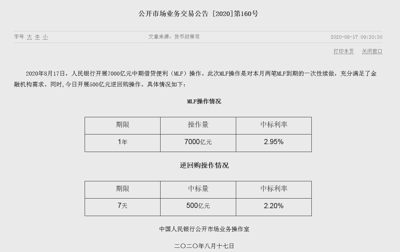 此前中国证券报引述分析人士认为,大额资金到期叠加地方债发行规模较大,MLF续做规模应该不会大幅缩量。央行将继续适时开展逆回购操作,维护资金面平稳。
