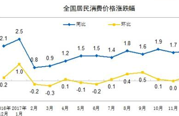 另外,2017年非食品价格上涨2.3%,涨幅比上年扩大0.9个百分点,其中,工业消费品价格上涨1.7%,服务价格上涨3.0%。