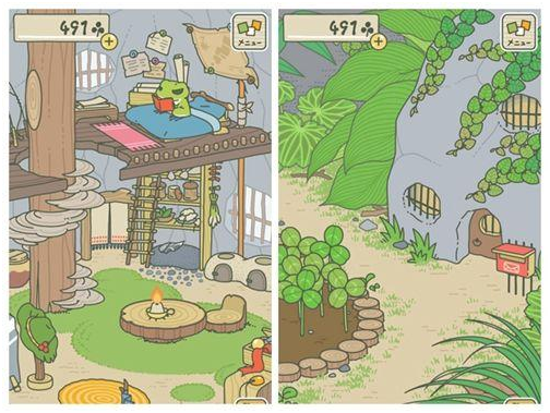有意思的是,这个青蛙完全不受玩家控制,它想走就走,想回便回,还会随时给你寄来旅行见闻明信片或一些特产、纪念品等;当然,外出空手而归也有可能。