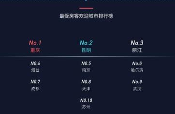 根据小猪短租2017年度数据显示,兼具了美色与美食的重庆领跑最受房客欢迎城市榜单,昆明、丽江紧随其后。去大城市似乎不再是当下流行的玩法,一线城市经常堵车、景区人山人海等较差体验,让不少游客望而止步。