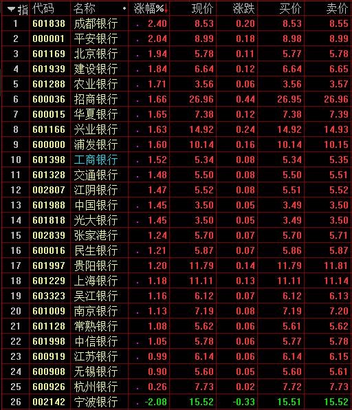 银行、券商两大金融板块全力护盘,板块内个股几乎全线飘红,成都银行、南京证券分别领涨。