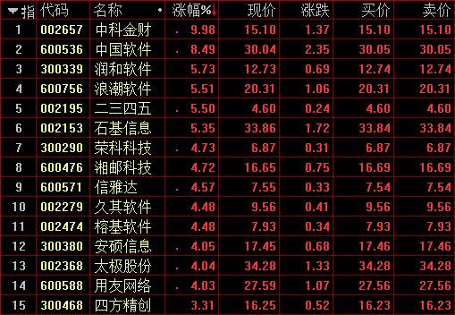 概念股方面,科技股午后反攻,国产软件概念股再度受资金追捧,中科金财直线封涨停,中国软件大涨逾8%,浪潮软件、信雅达、石基信息等纷纷冲高。5G概念股活跃,太辰光、朗玛信息等涨停。