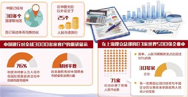 据悉,在上海设立总部的83家世界500强企业中,有71家已经办理了跨境人民币业务,其中人民币跨境收支占比超过50%的有30多家企业,有一些跨国公司已经将与中国企业的业务往来全部改用人民币计价交易。