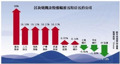 此次涨停的区块链概念股中也包含部分“ST”股,被纳入区块链概念股的*ST荣联、ST罗顿、*ST高升、*ST欧蒲的对应涨幅分别为5%、5%、5%、4.85%。