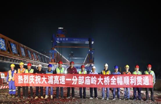 10月27日,广西大塘至浦北高速公路控制性工程——庙岭大桥全幅顺利贯通,标志着项目工程建设取得突破性进展,为今年年底大浦高速如期建成通车奠定基础。