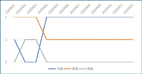 2020年,欧盟与中国实现贸易总额5860.32亿欧元,同比增长4.46%,中国在欧盟对外贸易总额中占比达到16.07%,同比上升2.3个百分点,中国成为欧盟最大贸易伙伴。美国和英国在欧盟对外贸易总额中占比分别为15.22%和12.20%,为欧盟第二大和第三大贸易伙伴。中国在疫情最为严重的2、3月份降为欧盟第三大贸易伙伴;4月份,随着中国复工复产复市的推进,以及疫情在全球范围内的扩散,中国一跃成为欧盟第一大贸易伙伴,并维持至2020年12月。美国则由4月开始降为欧盟第二大贸易伙伴,直至2020年结束。