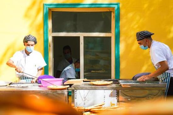 “我们现在每人每个月工资达到3500元左右,公司还给我们每个月600元的各类补助。吃饭,住宿是免费的,我们一个月能存近3300元,我们的生活水平在不断提高。这里的每个馕坑可提供就业岗位有3—5个,极大地促进了就业。”馕产业基地的打馕师傅阿卜杜艾尼说。