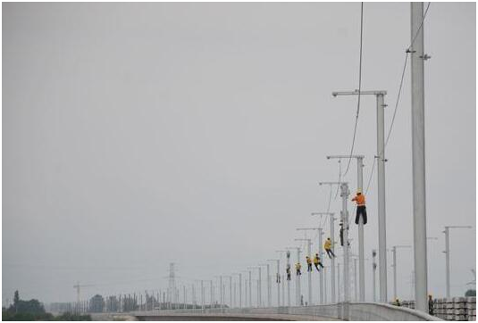 新建中兰客专(甘肃段)首条接触网附加线成功架设