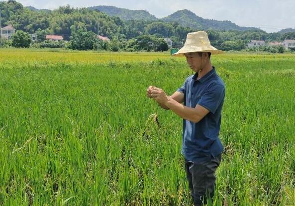 午后,热浪袭人,一群白鹭在湖南长沙县金井镇湘丰村稻渔鸭有机综合循环生态种养示范基地嬉戏。皮肤黝黑的基地主人戴智勇头戴草帽、挽起裤管正在田间察看水稻生长情况。
