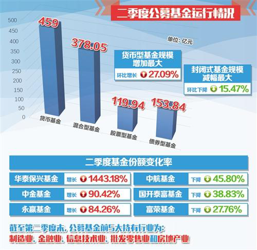 据好买基金研究中心统计,今年二季度货币型基金规模增加最大,环比增幅达27.09%。封闭式基金规模减幅最大,环比下降15.47%。货币型、混合型和债券型基金继续位居管理规模前3名,管理资金分别为5万多亿元、2.12万亿元、1.81万亿元。